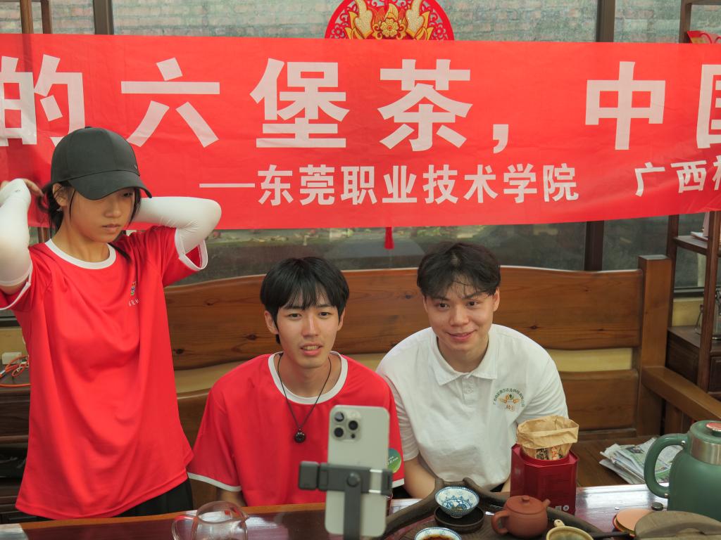 通过调研,队员们发现传统销售渠道受限是制约茶产业发展的主要瓶颈之一。为此,团队结合专业优势,策划了“直播带货助农”行动,搭建线上销售平台,借助抖音、微店等新媒体渠道推广六堡茶,帮助茶农拓宽销路。直播间里,团队成员化身“带货主播”,从茶叶历史文化到冲泡技巧,生动讲解吸引众多网友,与观众热情互动。同时,在三黄鸡展示区,团队成员跟随养殖大户练伯,仔细观察三黄鸡的生长环境、外形特点,认真聆听关于三黄鸡养殖技术、营养价值及市场前景的介绍。