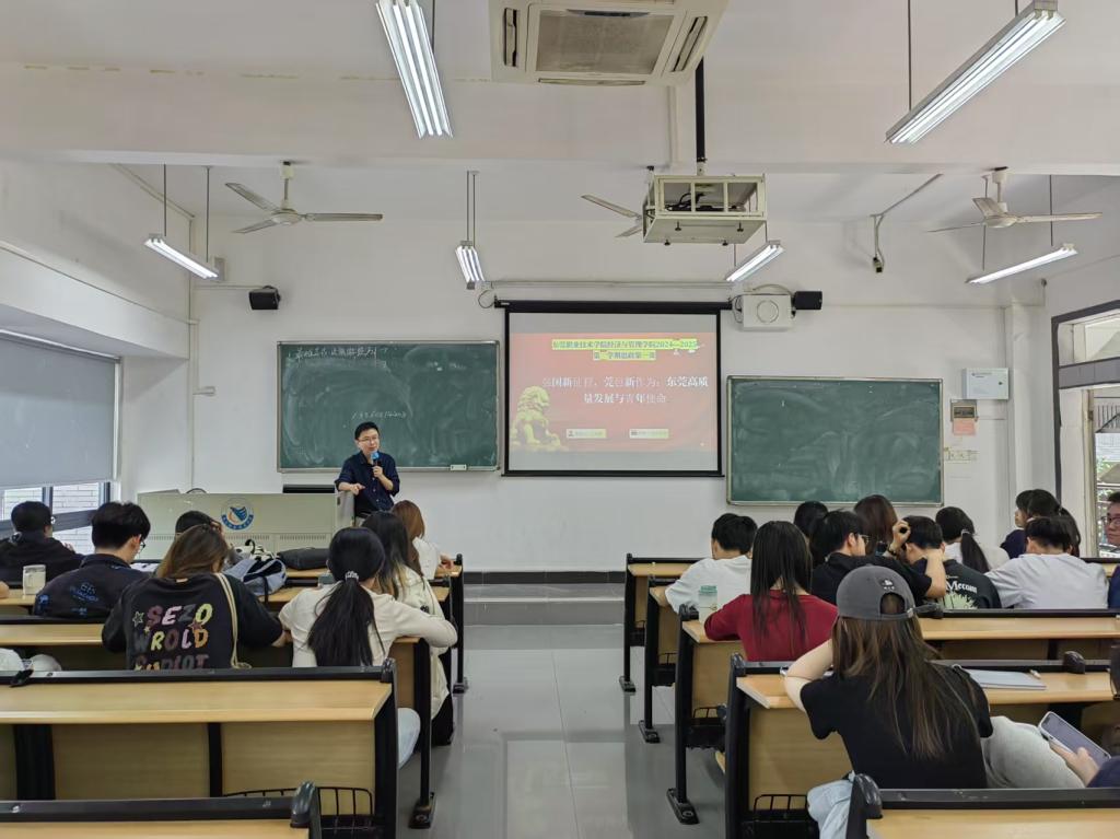3月25日上午,经济与管理学院副院长张文利为24级工商协同1班的同学们讲授了题为《强国新征程,莞邑新作为:东莞高质量发展与青年使命》的思政第一课。