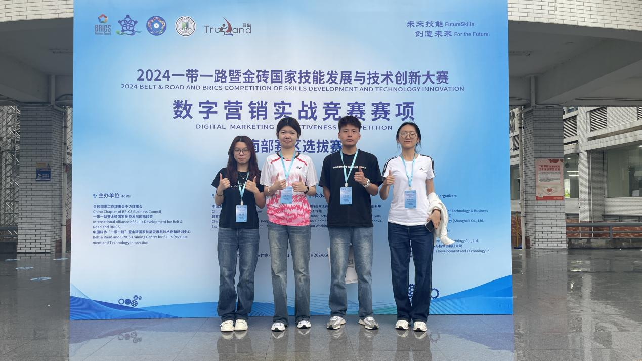 由一带一路暨金砖国家技能发展国际盟、中国科协“一带一路”暨金砖国家技能发展与技术创新培训中心主办,教育部中外人文交流中心等联合主办的2024一带一路暨金砖国家技能发展与技术创新大赛之数字营销实战竞赛赛项南部赛区预选赛于2024年6月1日在广州科技贸易职业学院举行。我院由黄嘉敏、张文利老师指导,22级工商企业管理专业黄冰蓉、林树伟同学获得一等奖,顺利晋升国赛;何瀚玮、贺茉莉老师指导的22级工商企业管理专业学生张琳妍、苏嘉妮同学获得三等奖。