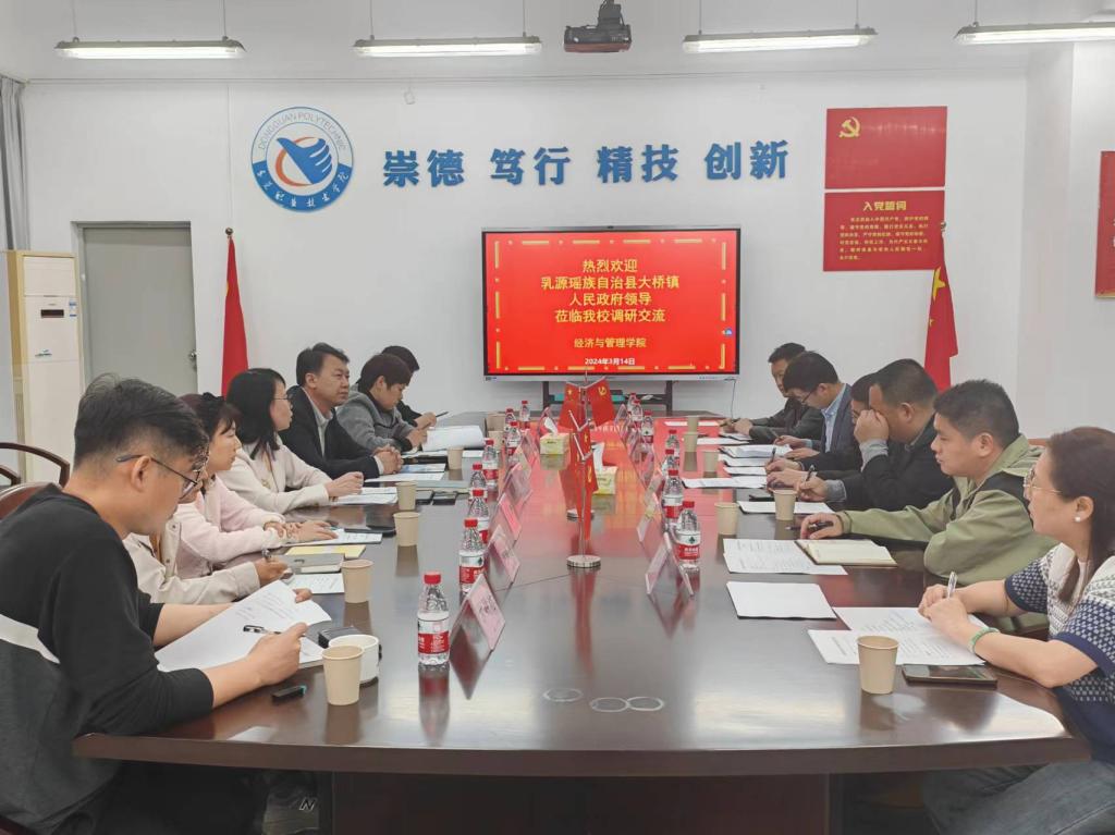 3月14日下午,乳源瑶族自治县大桥镇镇长李卫清一行携企业到经济与管理学院开展交流座谈活动。全国人大代表、经济与管理学院院长周虹教授、经济与管理学院党总支书记陈柏林、经济与管理学院副院长贺茉莉、以及经管学院部分专任教师参与了座谈交流活动。