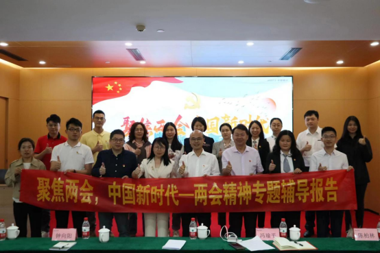 为更好推动党建工作和业务工作深度融合,以党建引领推动高职教育高质量发展。5月12日下午,经济与管理学院党总支和松山湖市场监管分局、南部片区党委、招投标服务所党员干部共约40人在阳光雨党群服务中心(南部片区)南湖湾讲堂开展了“聚焦两会,中国新时代”为主题的党建共建活动暨全国两会精神专题辅导报告。经济与管理学院党总支书记陈柏林、院长周虹、教师代表以及松山湖市场监管分局、南部片区党委、招投标服务所党员干部共约40人共同出席活动。