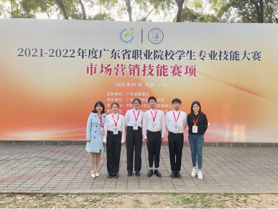 近日,由广东省教育厅主办的“2021—2022年度广东省职业技能大赛市场营销技能赛项”,在广州科技贸易职业学院举行。经济与管理学院黄嘉敏、何瀚玮老师指导并带队参赛,2020级工商企业管理专业学生方师钿、刘梓晴、罗玉海、张桂华四名同学组成参赛队伍参加本次大赛。